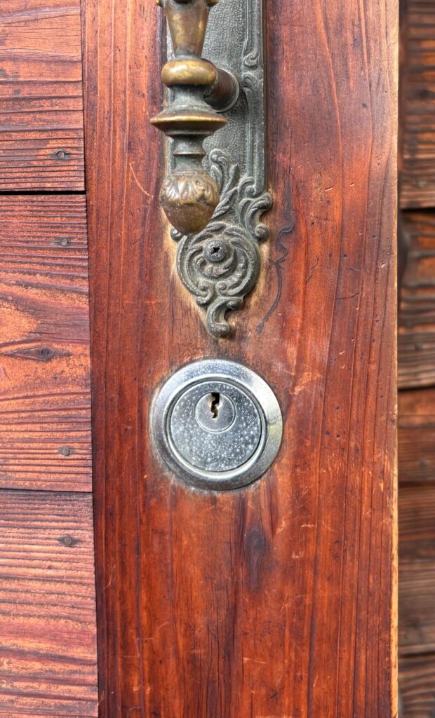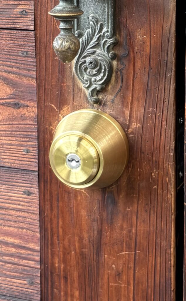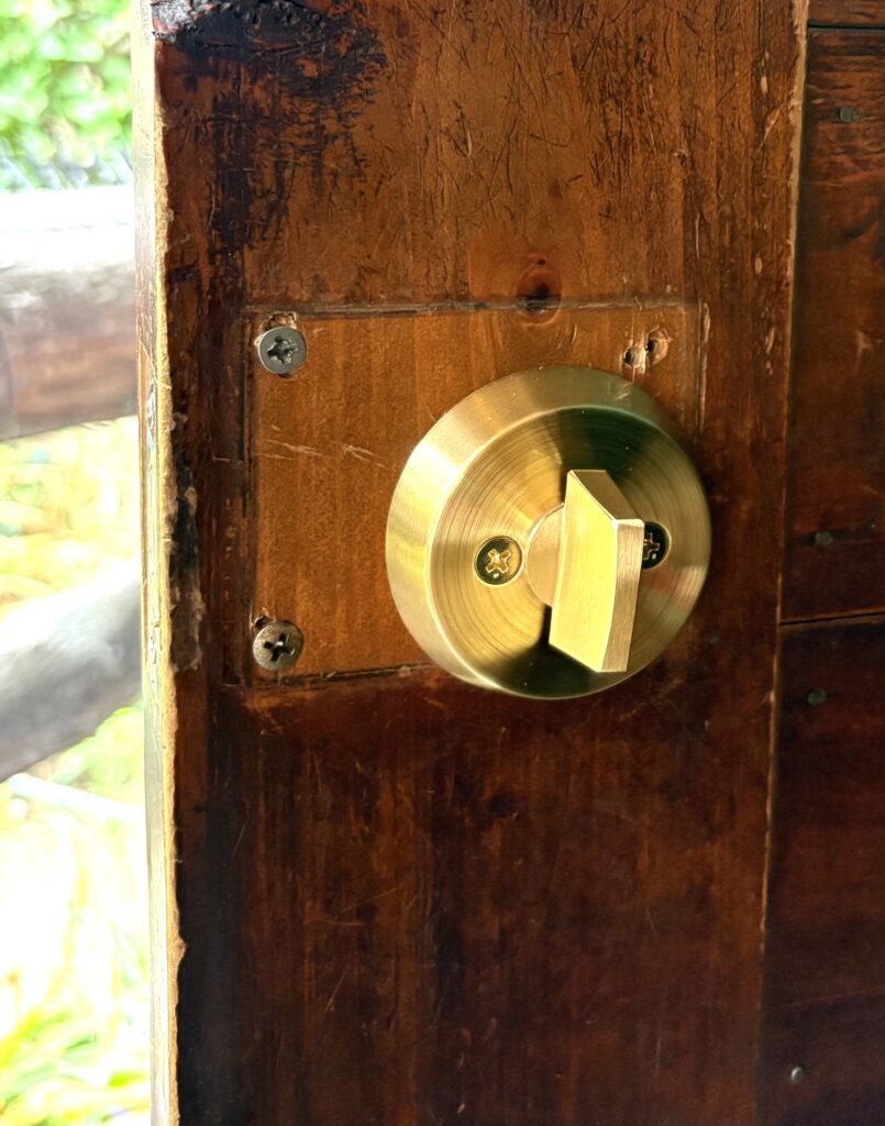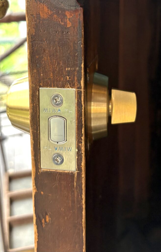 表側は完全に前の錠前の跡が隠せますが、室内側は四角い商品の跡が丸見えになりす・・・