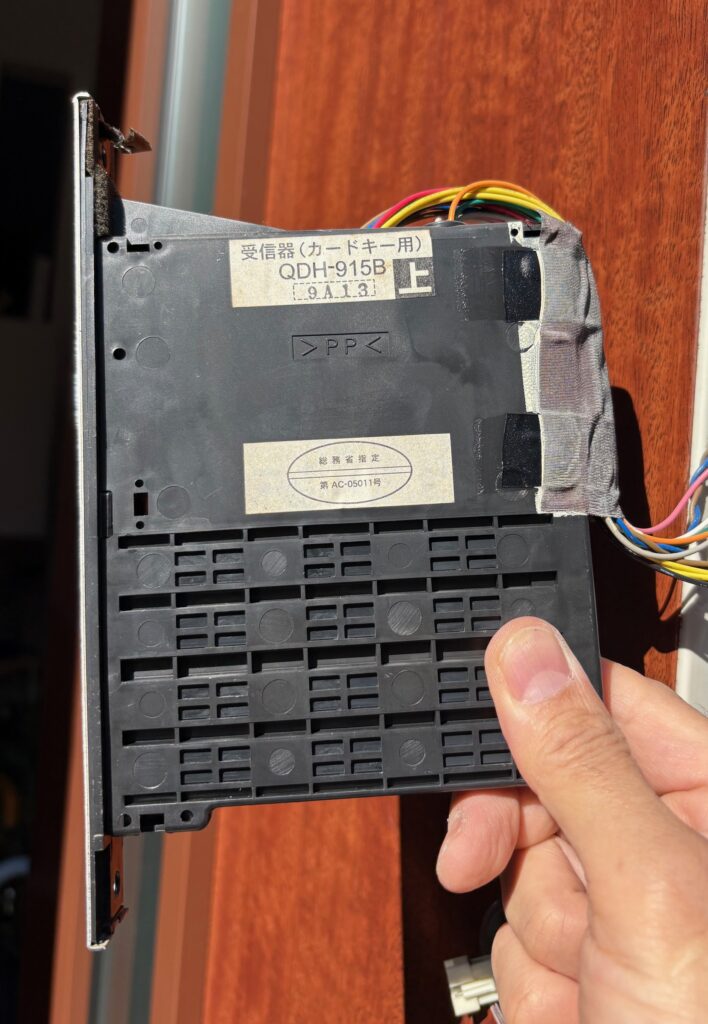 このドアは長い飾り座が上から下まで付いているタイプで、その飾り座の中にカードリーダーが付いているのですが、どうやら飾り座を外さないと配線にアクセス出来ない・・・