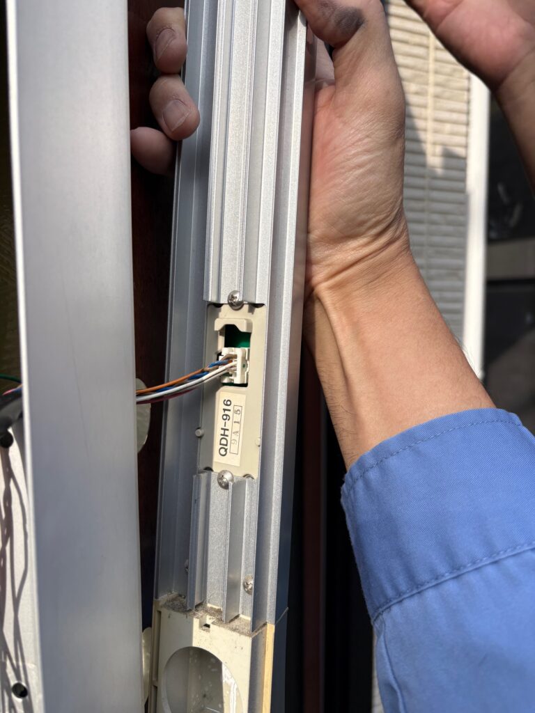電動サムターン、錠ケースの交換が終わり、ご主人に確認をお願いしたところ、ウイーン・・ガチャン!かかりました!!