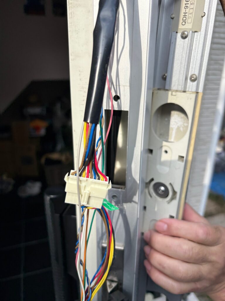 電動サムターンとの配線は直ぐに見えるのですが、カードリーダーとの配線が見えない・・・