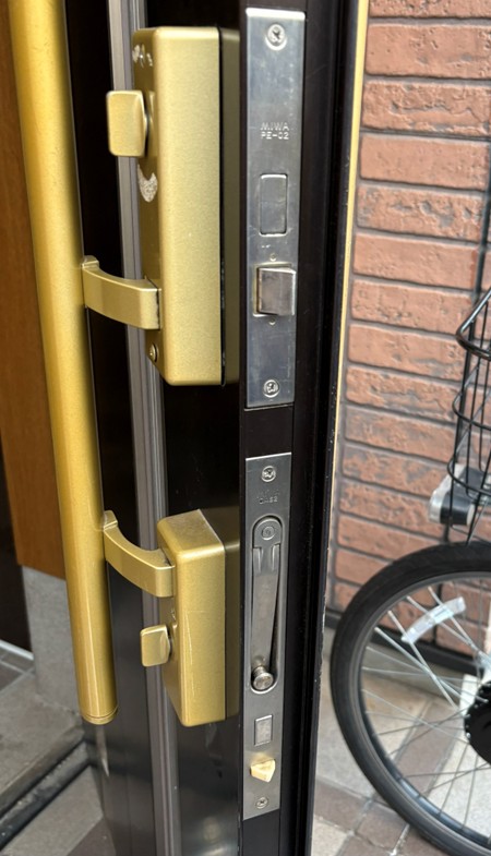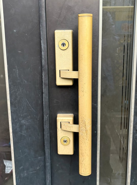 現場に到着して、お話を聞くと、下側のカギの調子が悪いので、ついでに上も一緒に交換してほしいとの事